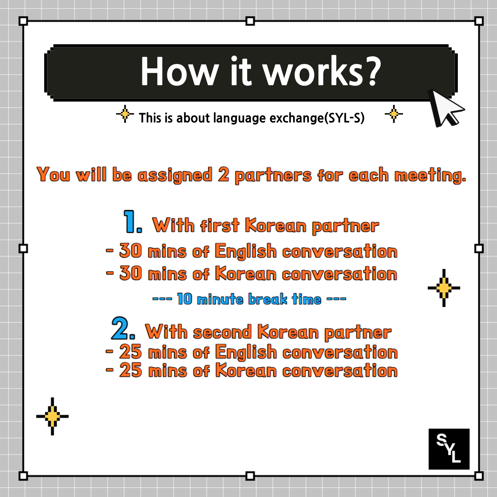 SYL provides members 1:1 language exchange experience.